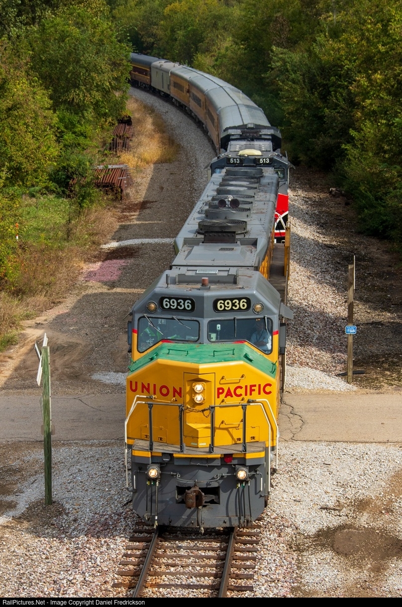 The Railroading Heritage of Midwest America organization operated two days of excursions with restored DDA40X "Centennial" locomotive #6936, with Iowa Interstate providing ES44AC #513 for backup. The trainset operated one round trip per day - west towards South Amana, IA on 9/20 and east to Bureau Junction, IL on 9/21, both trips originating in Silvis, IL. Here, the Bureau Junction trainset makes its way westbound back to Silvis, rolling underneath Wyanet Walnut Rd near Hennepin Canal Lock 19 on the south side of Wyanet, IL.