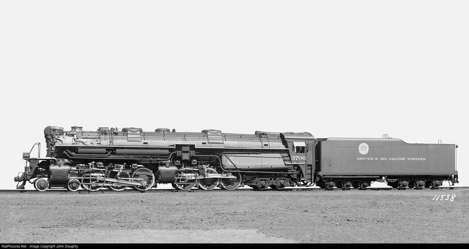 My great, great uncle Robert F. McKee, Sr., was a design engineer at Baldwin and he would give my father different Baldwin Locomotive Works builder's cards when my father would visit him in Collingswood, New Jersey. Here is the 4-6-6-4 built for the Denver and Rio Grande Western, number 3706. According to the specifications listed on the back of the builder's card, in working order the total engine and tender weight was 961,700 lbs., and it had a tractive force of 105,000 lbs. This Baldwin Locomotive Works builders photo card is from the John R. Doughty collection.