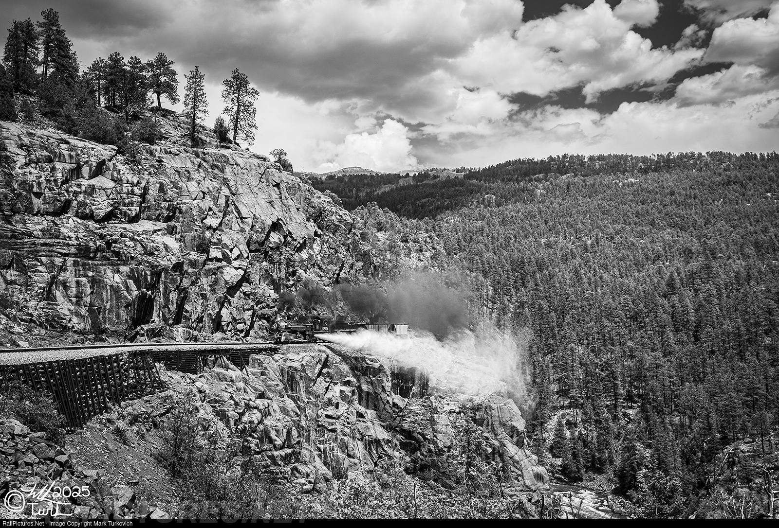 Durango & Silverton 480 negotiates the High Line as it performs a blowdown high above the canyon floor.