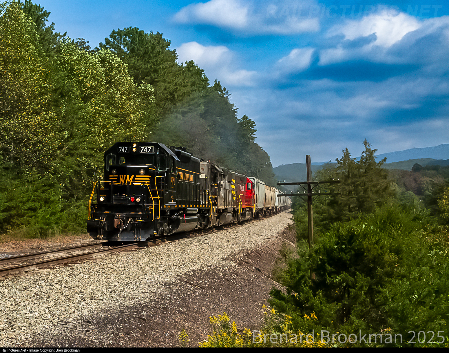 BB Z631 with a speed lettered WM leader leased to the power short BB from Precision Locomotive Services seen dropping down into Clifton Forge just west of Nicelytown with 61 cars for CSX.