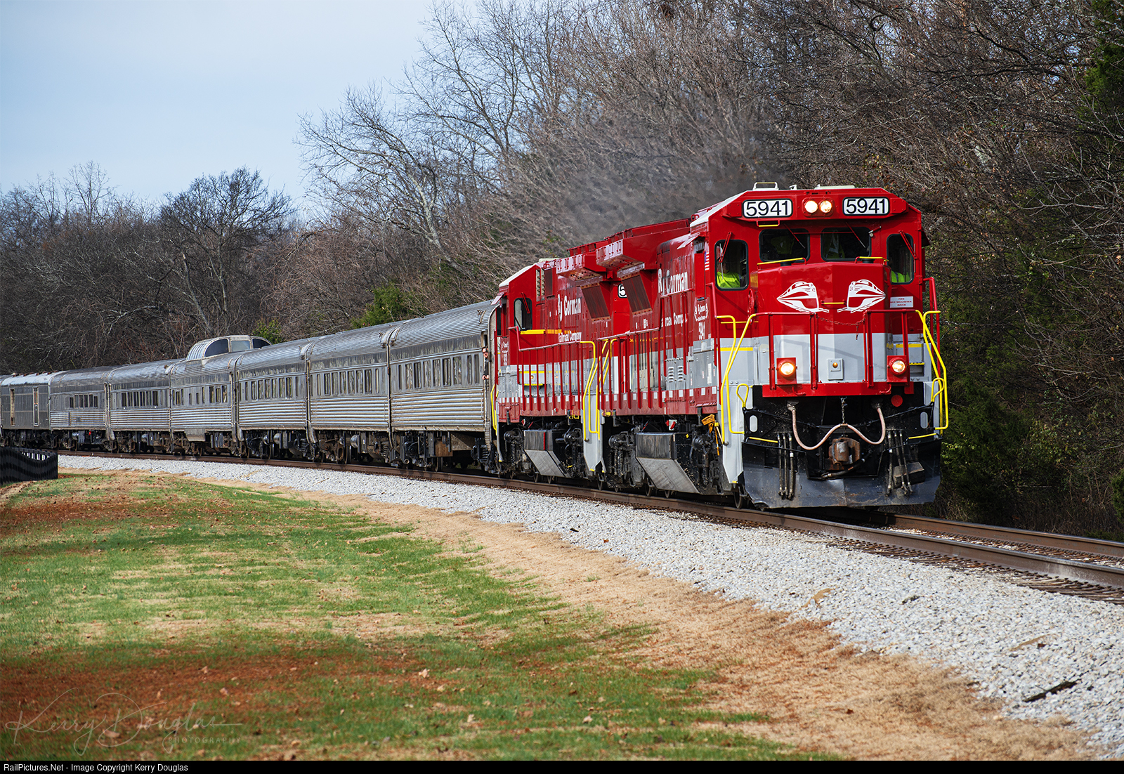 | The TCRM's Santa Express comes around the sweeting curve just west of the town of Mt. Juliet being led by a pair of RJ Corman red B40-8 is heading to the West Baddour Station in Lebanon, TN. Once the train completes the first half of the trip, it will then head back to Nashville with no layover being led by L&N GP7 Nº 406 and a B unit Nº 715. |