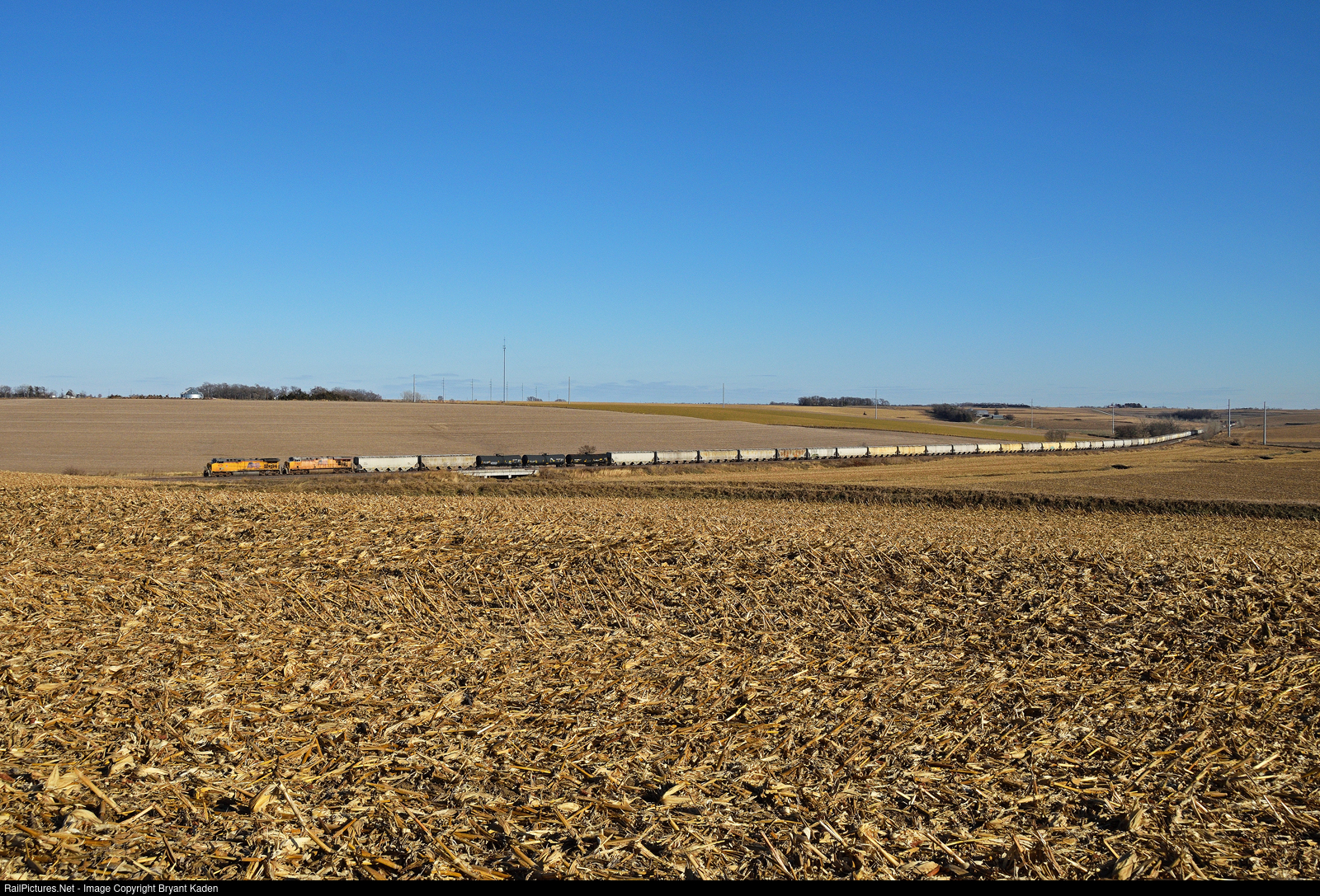 After enjoying a nice Thanksgiving dinner with family, while everyone else settled in for a nap or some football viewing, I excused myself for an hour or so to see if anything was moving on the Blair Subdivision. I was fortunate to see a fleet of three westbounds climbing Arlington Hill, including this lengthy manifest. The lead locomotive happens to be a repainted former Chicago & North Western AC4400CW, appropriate for this former CNW line.