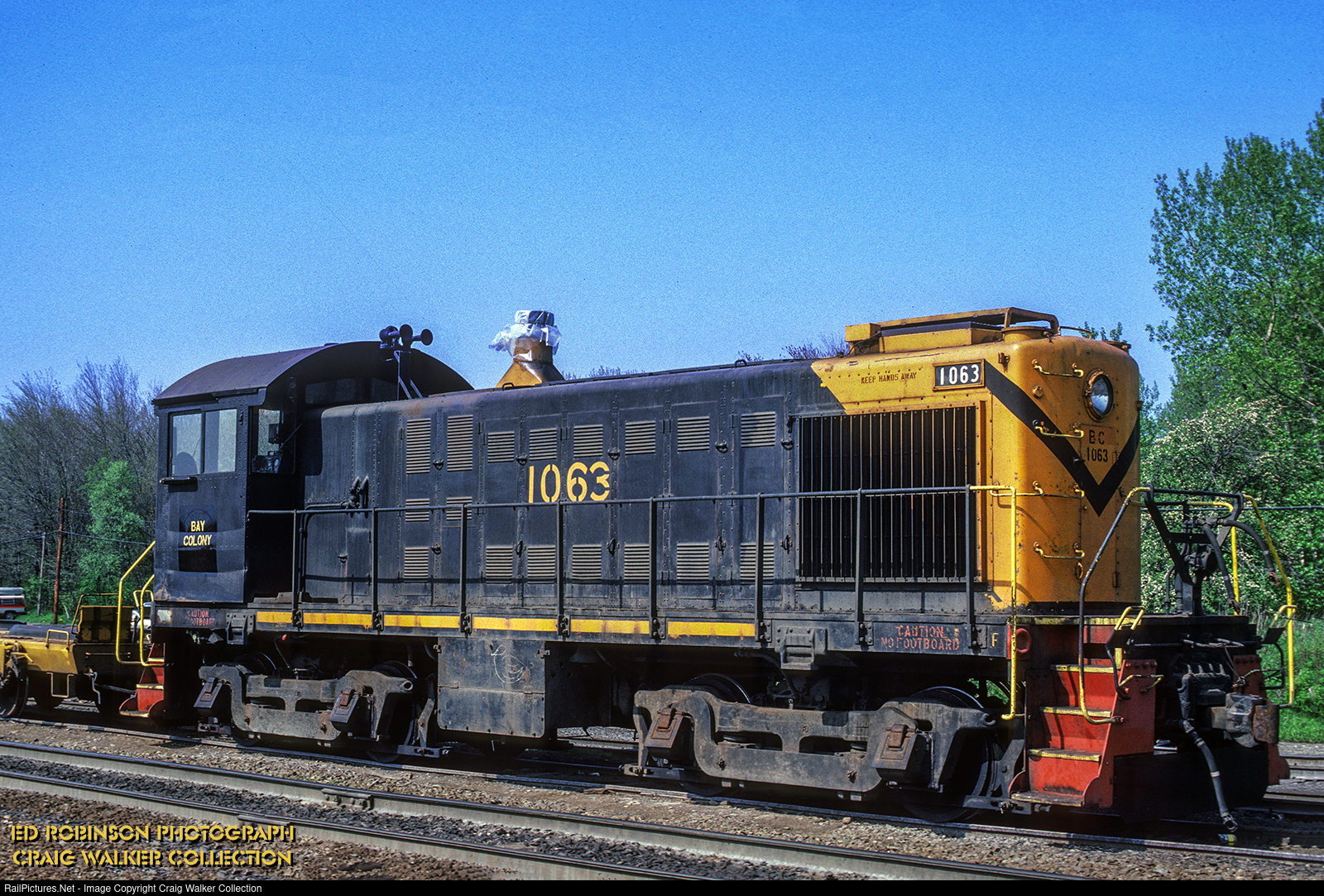 Portland Terminal Company S-4 1063 (originally Delaware & Hudson 3047) was sold to Massachusetts' Bay Colony Railroad in May 1983. It was stenciled for the new owner before it was shipped south.