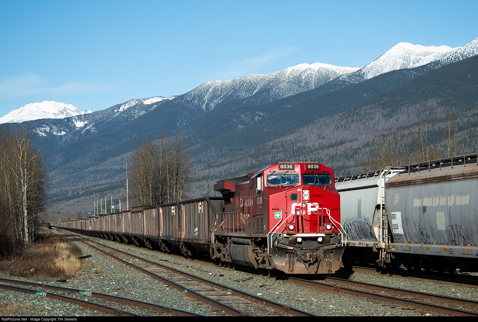 | CPKC coal empties from Prince Rupert, BC pull through CN's Track #1 at McBride heading back towards home rails at Kamloops, BC. |
