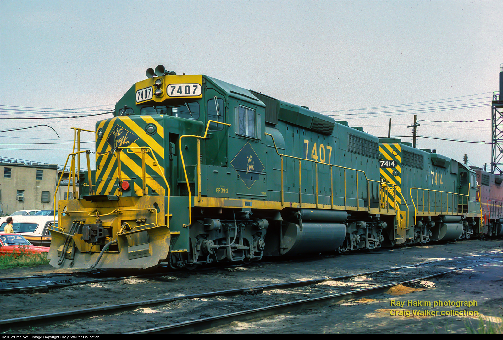 Delaware & Hudson Railway GP39-2 7404 was built by General Motors Electro-Motive Division in December 1974 as Reading Lines 3404. The D&H later renumbered it to DH 374, and it later ended up on CSX Transportation's roster, numbered CSXT 4300. This locomotive was in Newark NJ thanks to trackage rights on the nearly created (just 2 months 13 days earlier) Consolidated Rail Corporation, better known as Conrail.