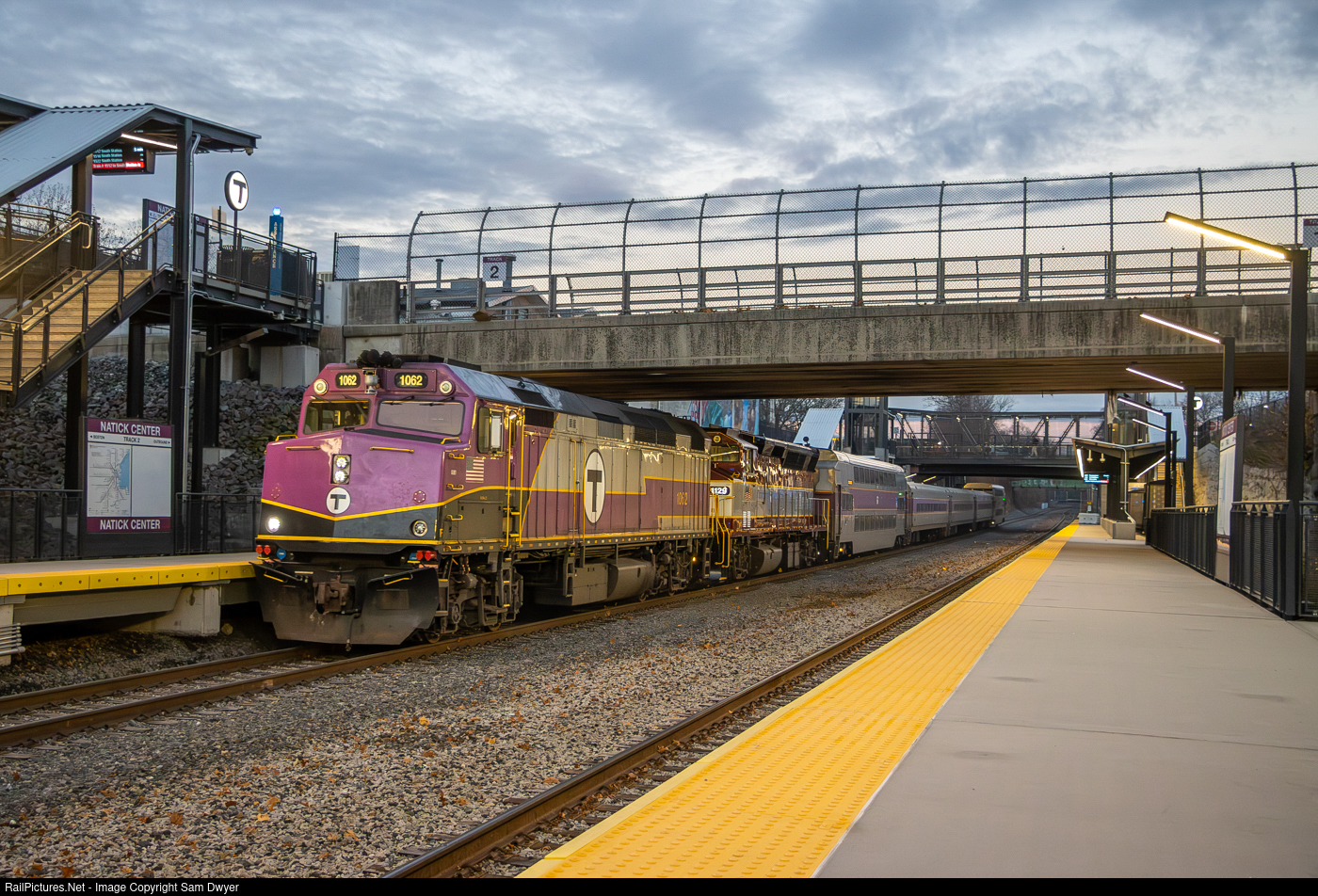 With inclement weather expected, the MBTA loops sets in Boston so a locomotive is set up to lead the first inbound train of the day, better able to handle snow and debris than a cab car. That operation lined up with a Worcester Main Line shutdown west of Framingham for CP-44 track work in Worcester, where MBTA 1129 was assigned over the weekend. When the backwards set in the layover yard developed mechanical issues with its head-end power generator, 1129 was conveniently tacked on after finishing its work duties. The Monday morning after, now with no weather expected, this rare doubleheader ended up leading train 510 into Boston. Once 510 got downtown, the set was looped, 1062 was pulled, and 1129 ran solo for the rest of the week.