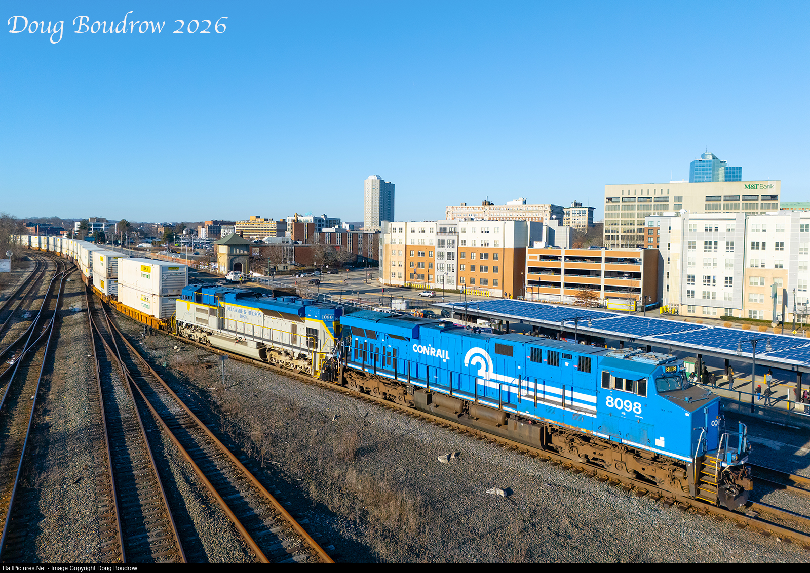 | On January 13th, 2026 The first NS intermodal train 264 was routed over the CSX Boston & Albany route to Ayer via Worcester. This routing change has been in the works for some time now to accommodate double stack trains which will not clear the Hoosac Tunnel. After delays due to work on the connector track in Voorheesville, NY and several bridges being raised, the train made its inaugural run. The Conrail and Delaware & Hudson heritage units leading were a nice touch. The train is diverging off the Boston & Albany Main to the Worcester Main just East of CP-45. |