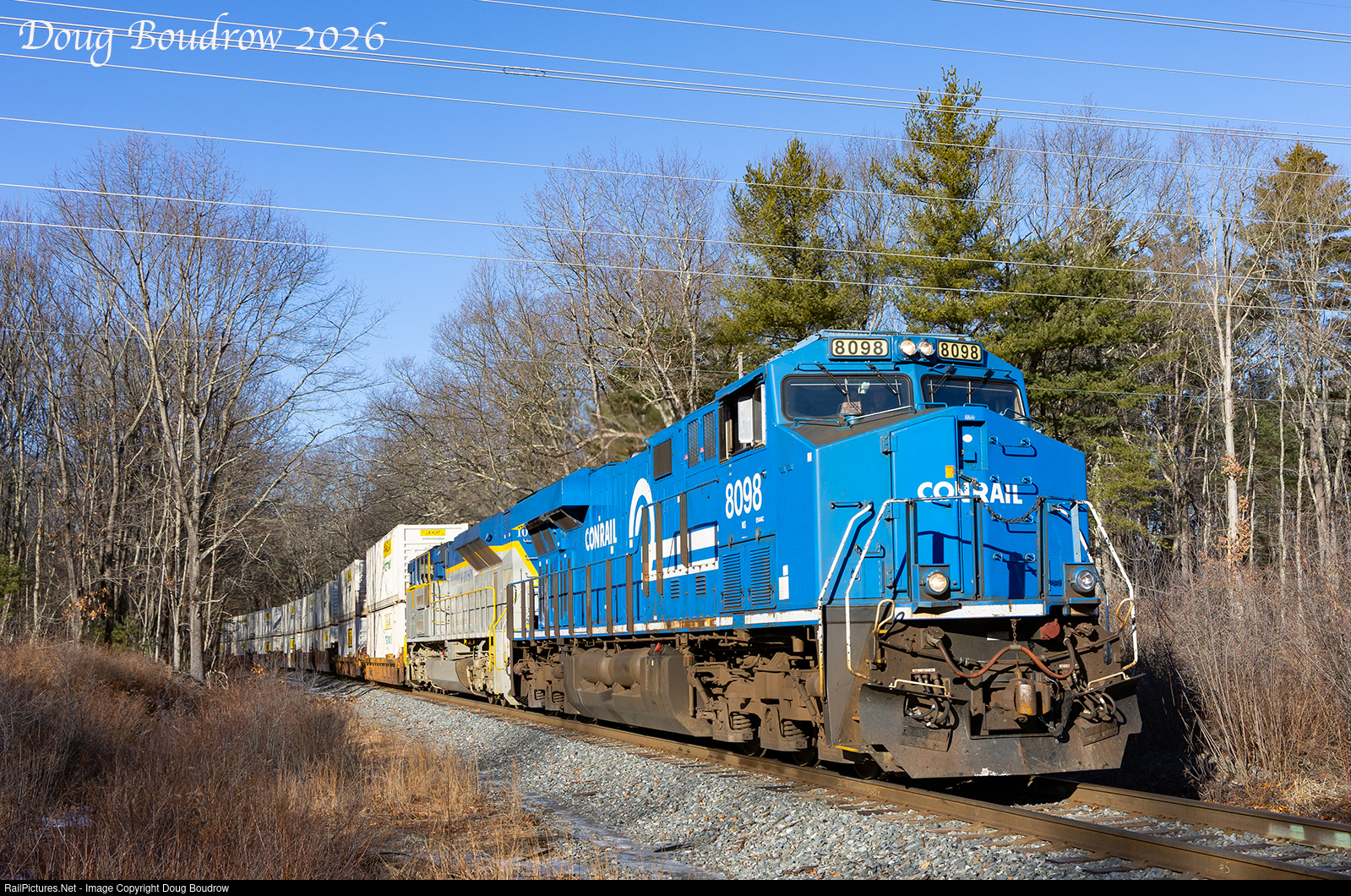 | On January 13th, 2026 The first NS intermodal train 264 was routed over the CSX Boston & Albany route to Ayer via Worcester. This routing change has been in the works for some time now to accommodate double stack trains which will not clear the Hoosac Tunnel. After delays due to work on the connector track in Voorheesville, NY and several bridges being raised, the train made its inaugural run. The Conrail and Delaware & Hudson heritage units leading were a nice touch. The train is approaching Newell Hill Road in Sterling as it charges up the Worcester Main. |