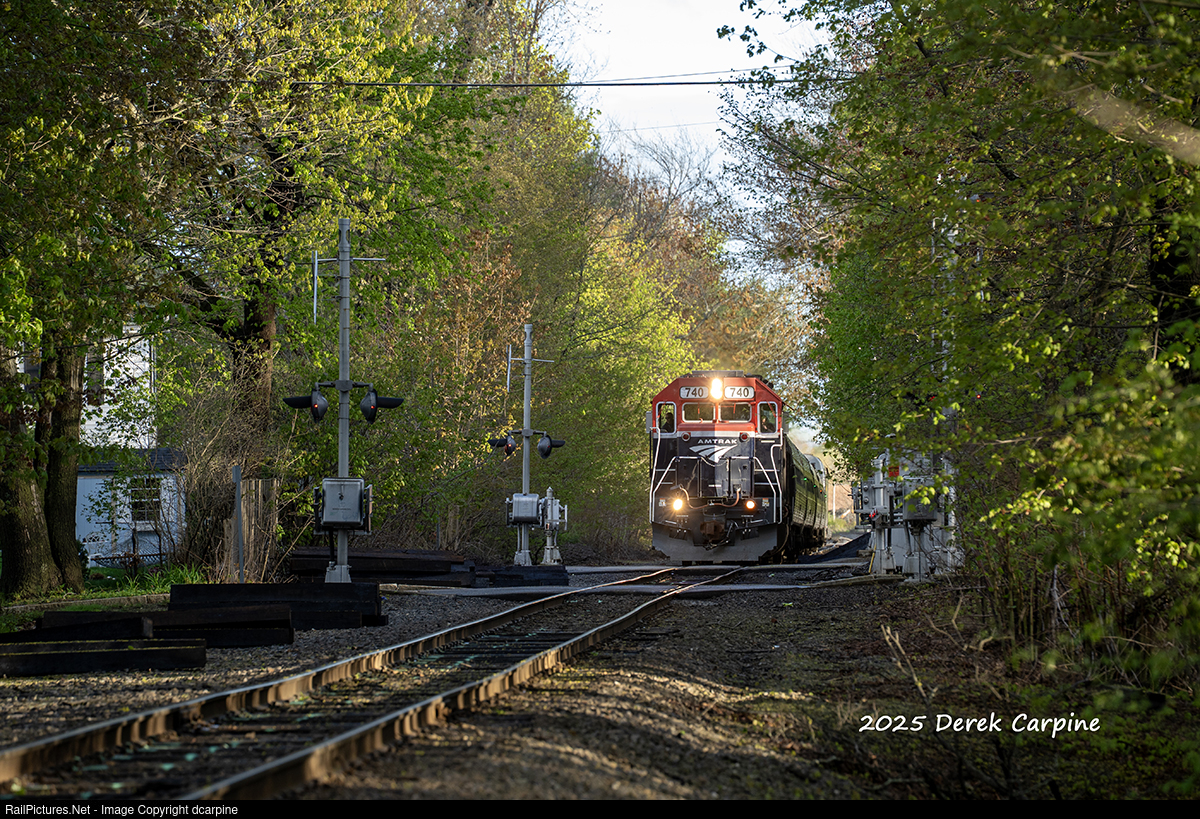 | Amtrak 740 leads 695 through the neighborhoods of Portland, ME with a neat leader, not seen up this way often at all. |
