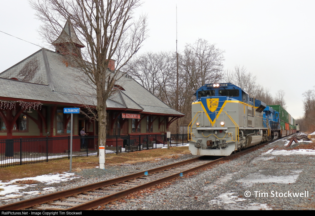 | Making History: In a very historical event, the first westbound NS Train 265 to traverse the former D&H Albany Main passes the original D&H station in Altamont (now a library). NS's D&H heritage unit leading the train made the event even more noteworthy. Additionally, larger road trains like this have not traversed this line since at least the 1990s--if not the 1980s. |