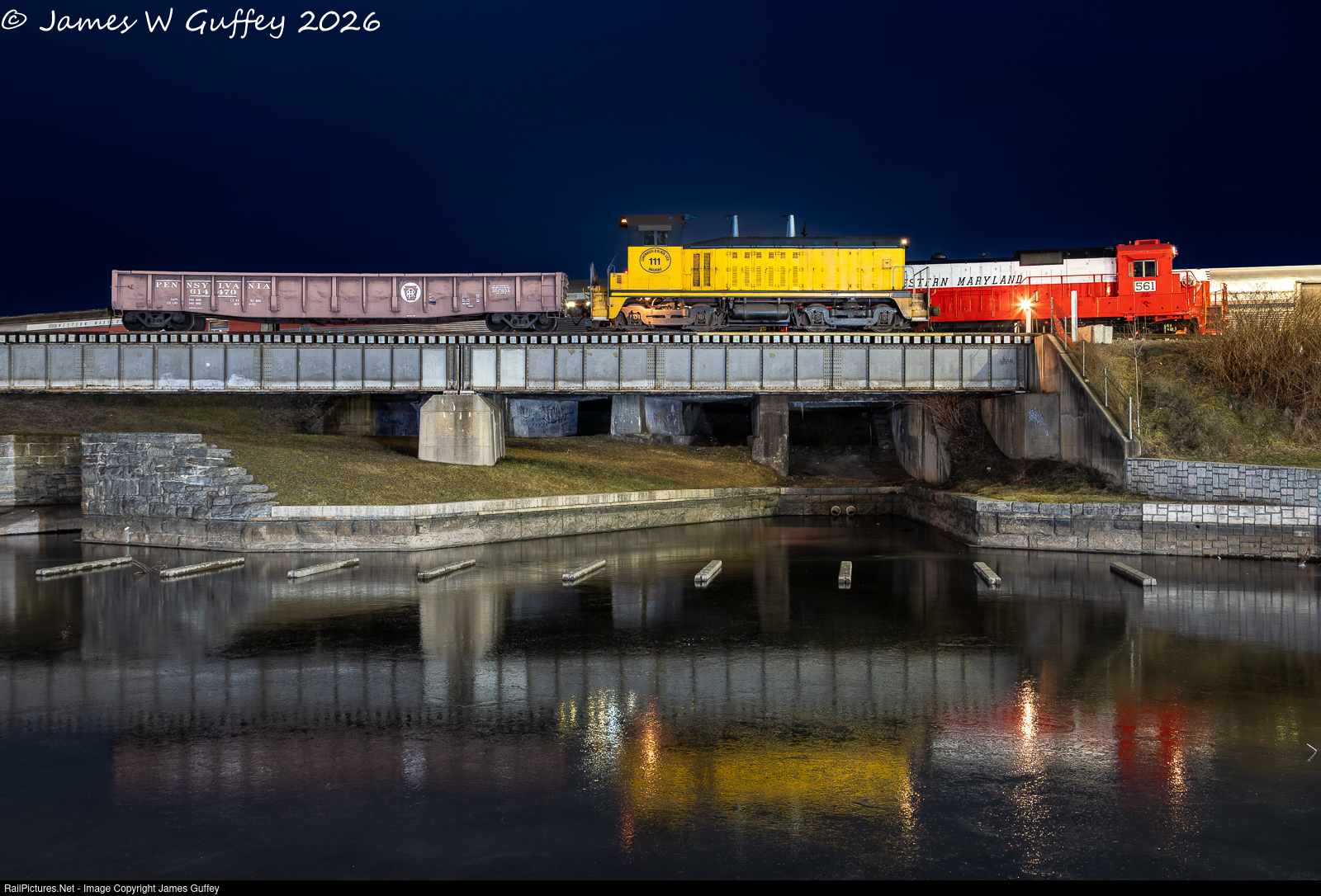 Conemaugh and Black Lick 111 posed with 561 making some switching moves on the main line during the night photo session conducted at WMSR.