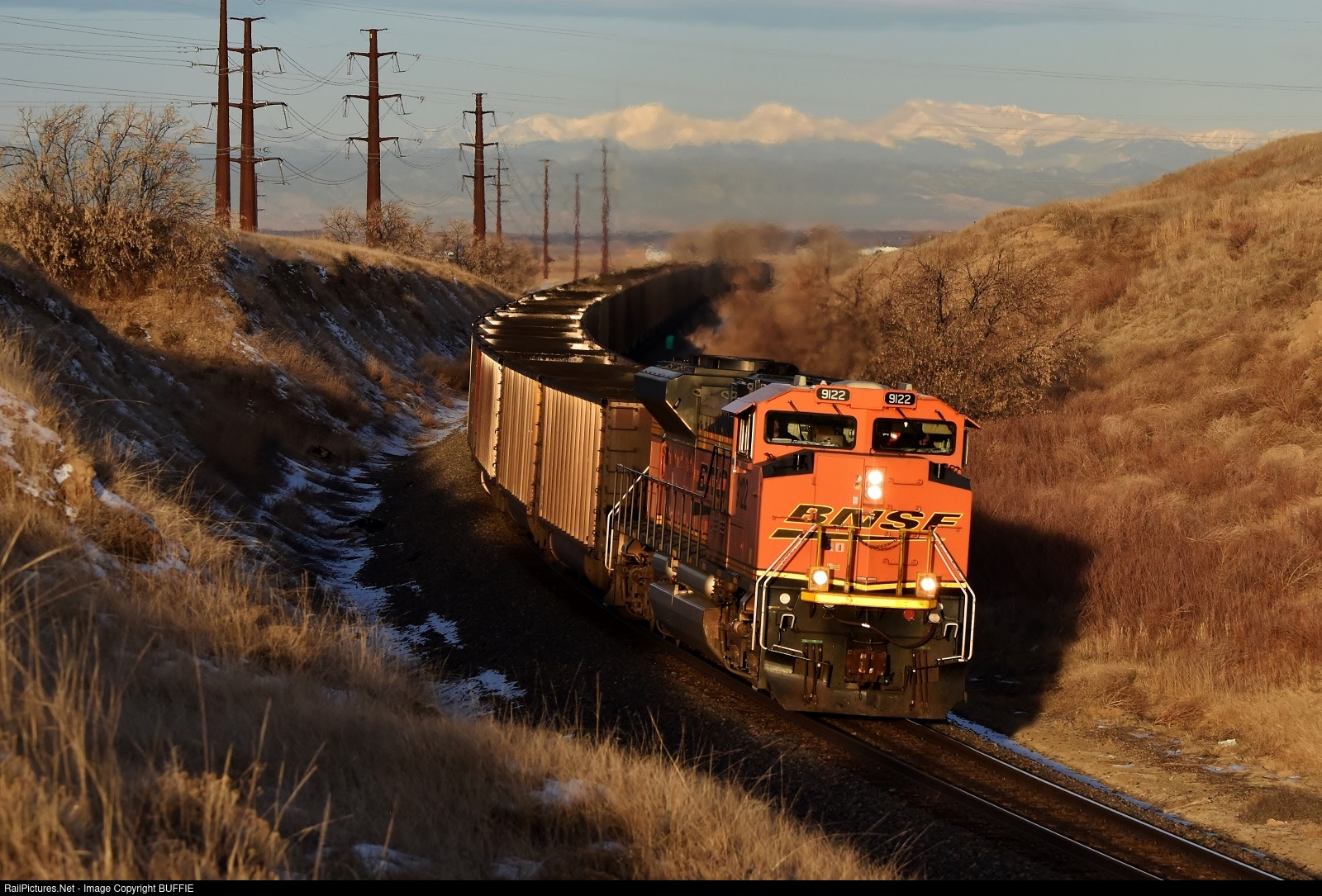 | BNSF 9122 (SD70ACe) runs solo through The Cut as it leads an empty coal train into a bright Colorado sunrise in Keenesburg, Colorado.