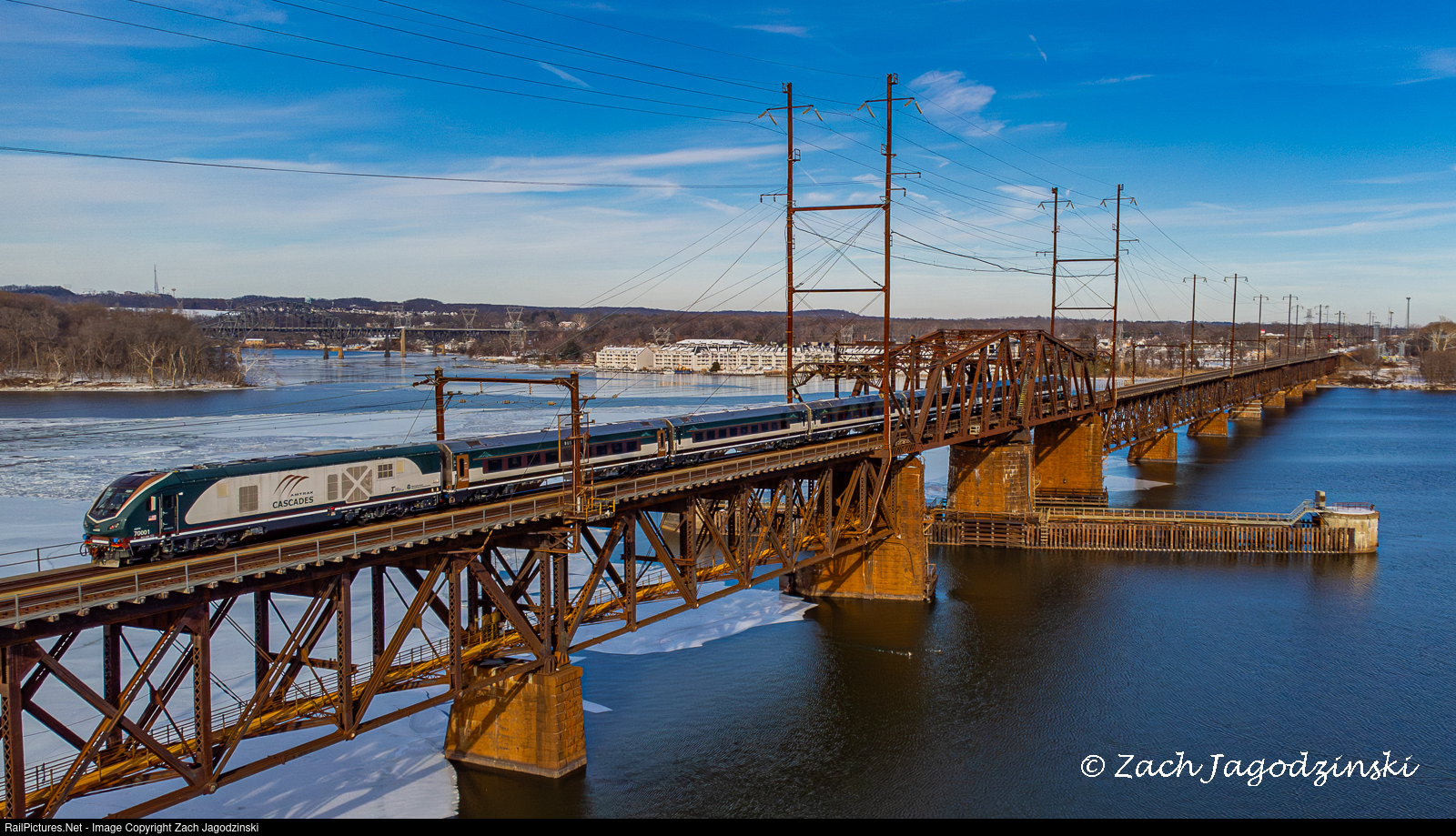Amtrak ALC-42E 70001 leads Amtrak's 2nd Airo Trainset over the frozen Susquehanna River Bridge on its way from Philadelphia's Penn Coach Yard to Washington Union Station for a promotional event the next day.