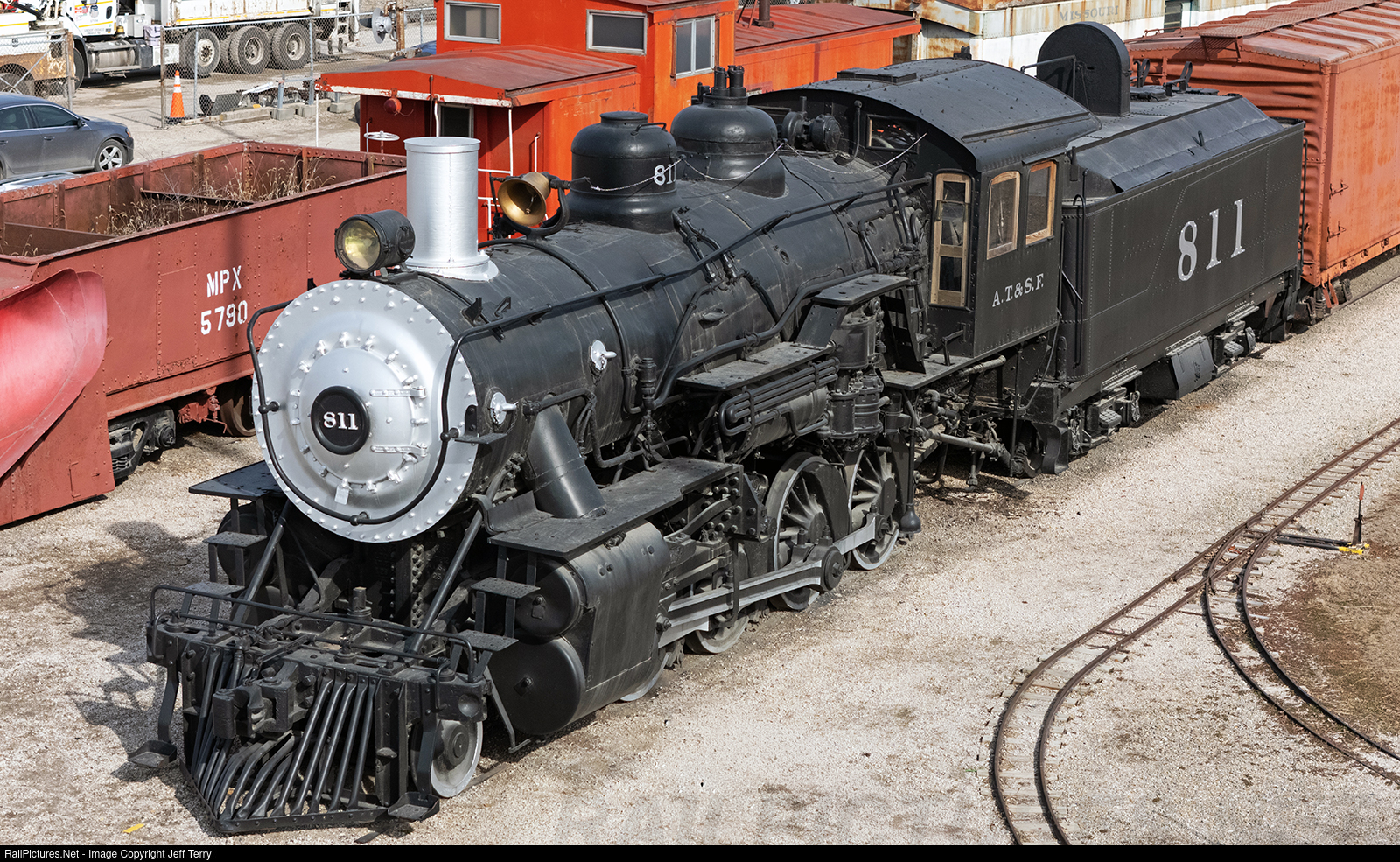 Santa Fe 2-8-0 811 was built by Baldwin in 1901 as a Vauclain Compound. Heavily modified over the years, it was simplified in 1912 and converted to an oil burner in 1923, but surprisingly never had its number changed. No. 811 served the AT&SF until 1954 when it was donated to the city of Atchison, Kansas, for display.