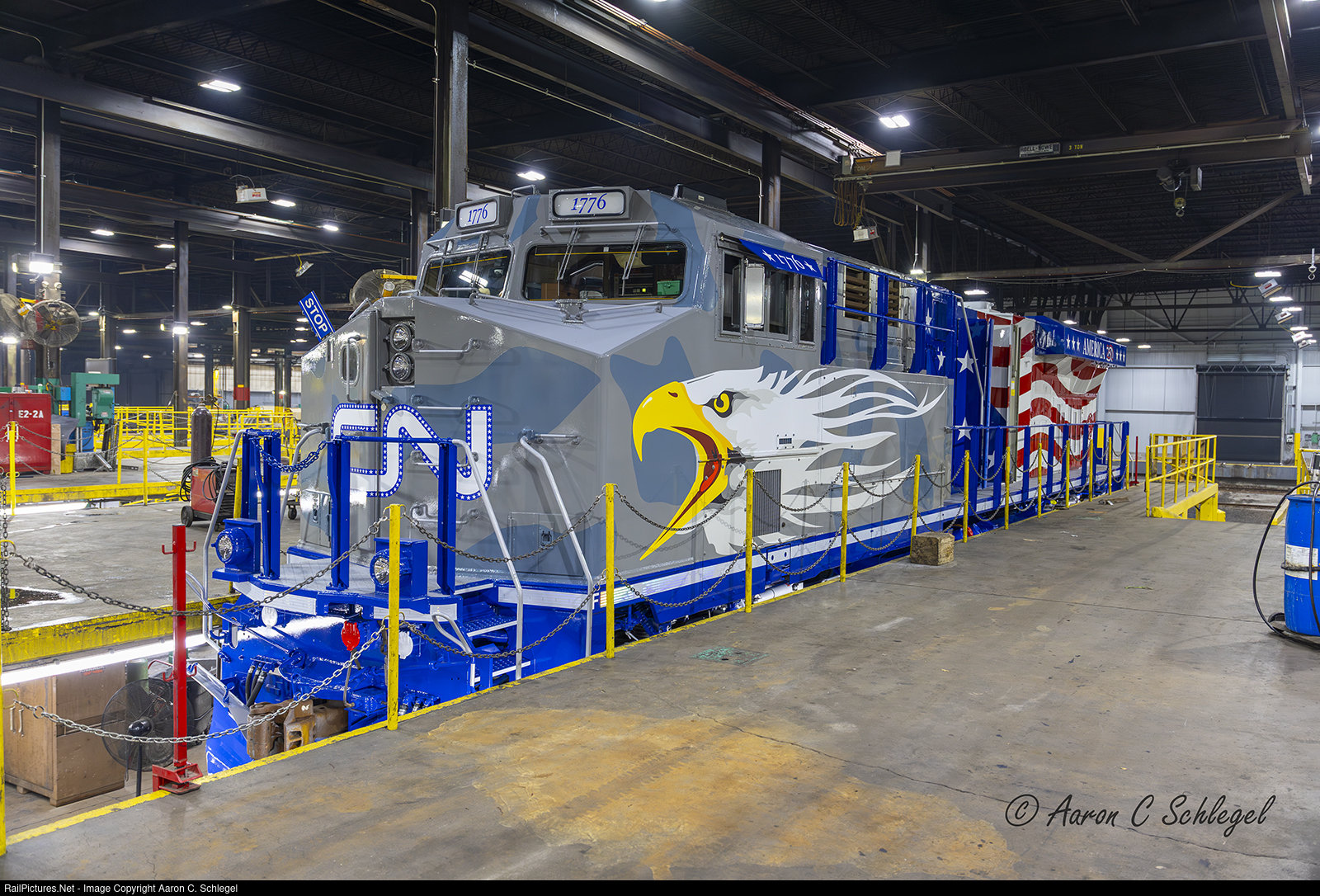 | Getting the final inspection by the staff at Harris Shops. The CN 1776 gets its final touch before being put into revenue service. An absolutely incredible tribute to our nation's 250th Anniversary. |
