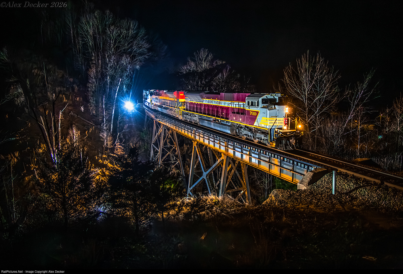 As the sound and smell of brake shoes fill the quiet and clear air of southern Virginia, one of CPKC’s heritage SD70ACU’s leads 50Z over Prillaman Trestle as they make their way south on the Winston Salem District, otherwise known as the Pumpkin Vine. |
