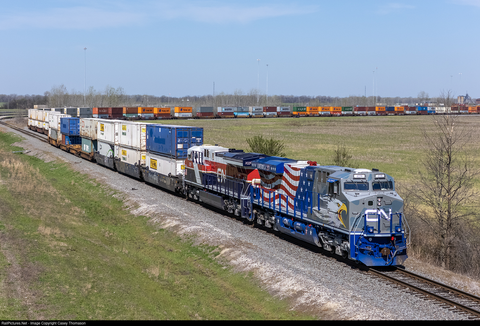 Canadian National's "America 250" duo yards the inbound Z train from Chicago at the Memphis Intermodal Terminal.
