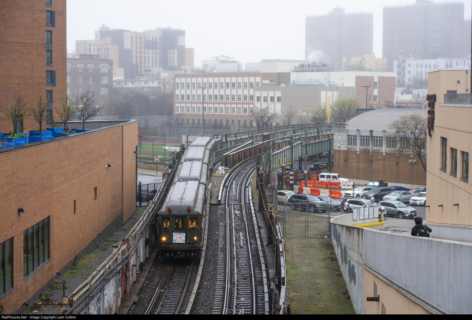 The morning of the Yankees Opening game, New York Transit Museum's preserved Low-Voltage "Low-V" subway cars descend into the Gerald Avenue Portal after traversing the IRT White Plains Road line out of the MTA's 239th St Maintenance Shop. They will deadhead to Grand Central - 42nd St Station.