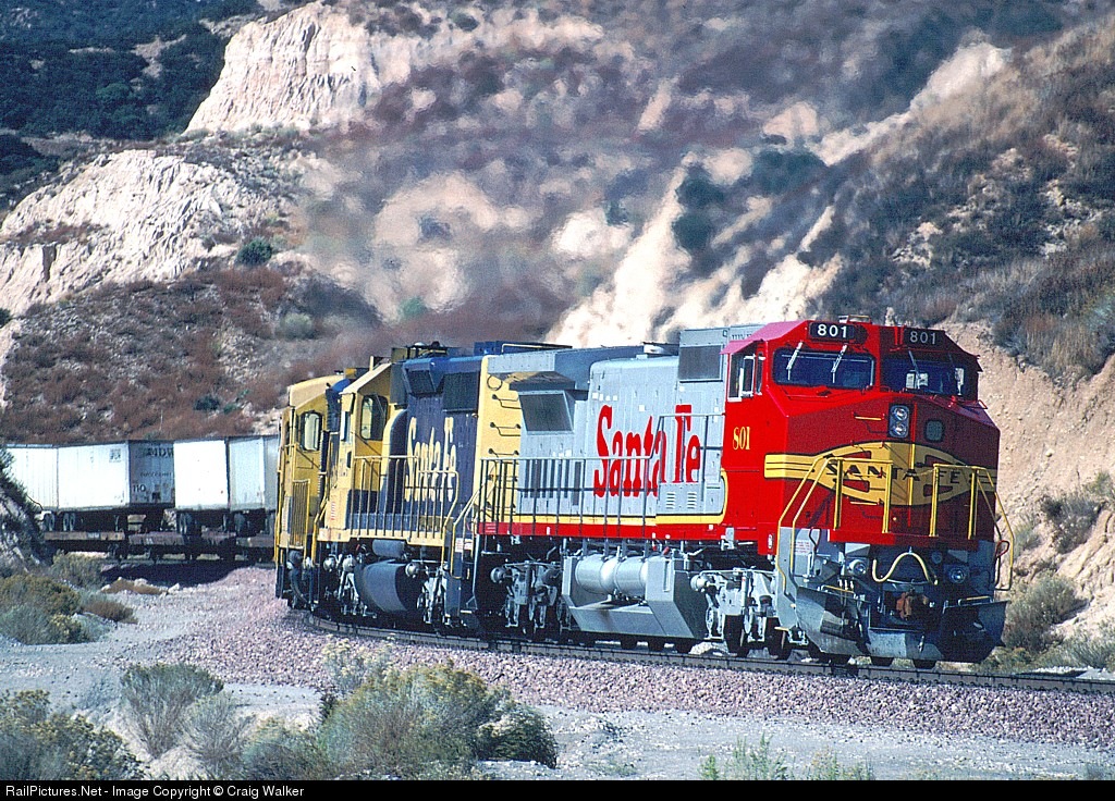 RailPictures.Net Photo: ATSF 801 Atchison, Topeka & Santa Fe (ATSF) GE C40-8W (Dash 8-40CW) at Sullivan's Curve, California by Craig Walker
