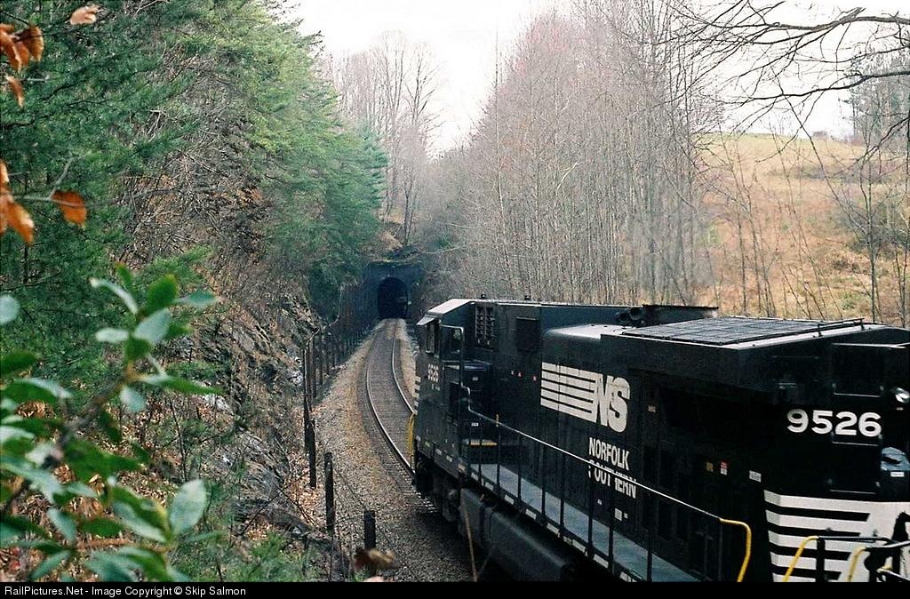 9526 approaches Hardy Tunnel on the old Virginian Railway portion of Norfolk Southern.