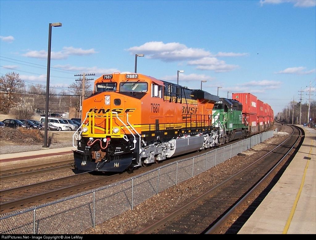 The first revenue run of the new logo! Looking good as it passes through the curve at Belmont Road in Downers Grove on its maiden voyage. Click Here to see my other photos of the 7687.