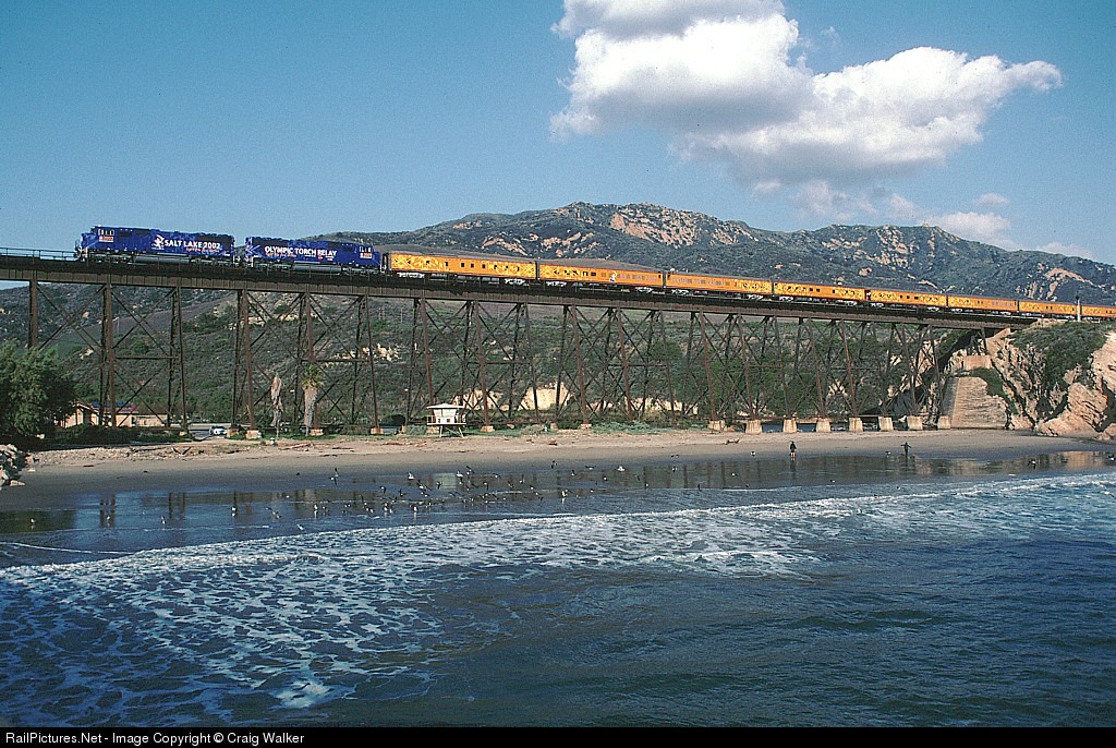 UP SD70M 2002 leads the Olympic Torch Relay Train on its journey carrying the Olympic Flame to the Winter Olympics in Salt Lake City, Utah.