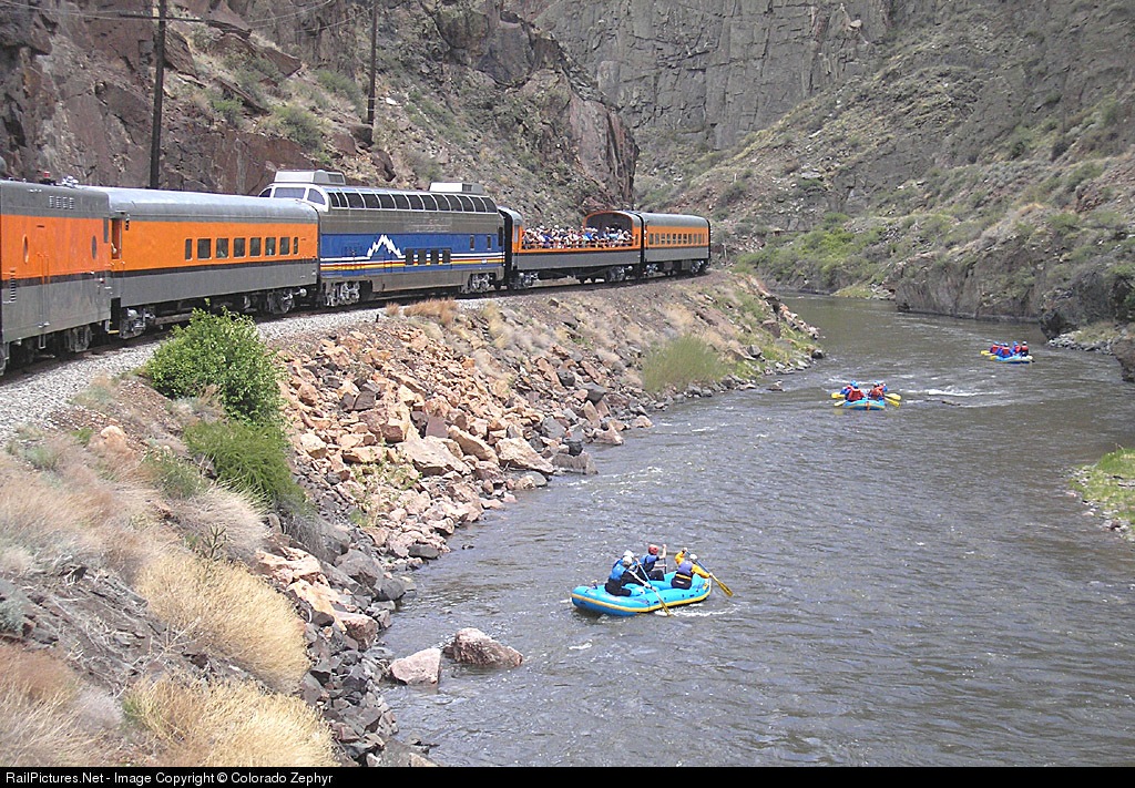 CaƱon City & Royal Gorge has repainted 2/3rds of their train for the 2006 season. Ex-Holland America dome 507 retains scheme used in Alaska. Rafters float down Arkansas River in Royal Gorge.
