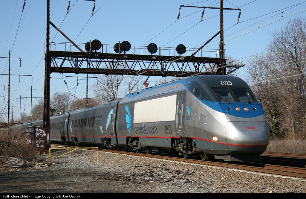 RailPictures.Net Photo: AMTK 2023 Amtrak Bombardier/Alstom Acela Express Trainset at Darby, Pennsylvania by Joe Osciak