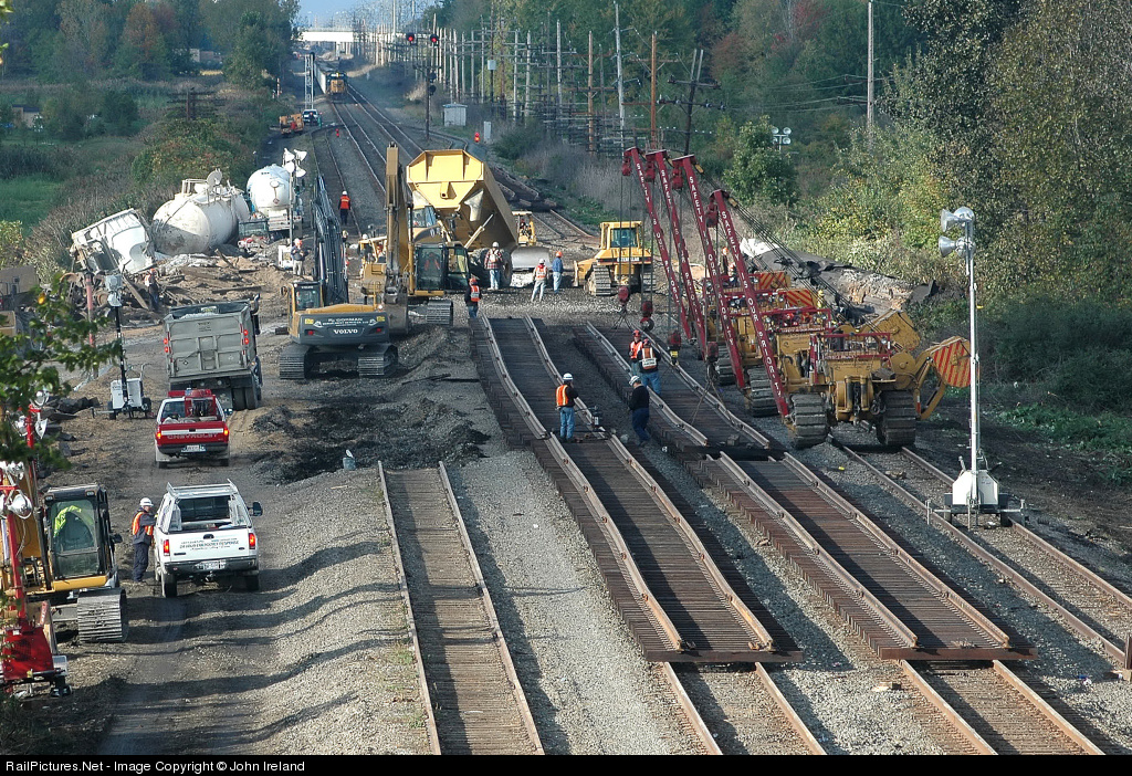 | The site of the Q380 derailment plus three days. CSX had hoped to have had at least one track open by this time, but as you can see, it will be Sunday before anything can get moving. |