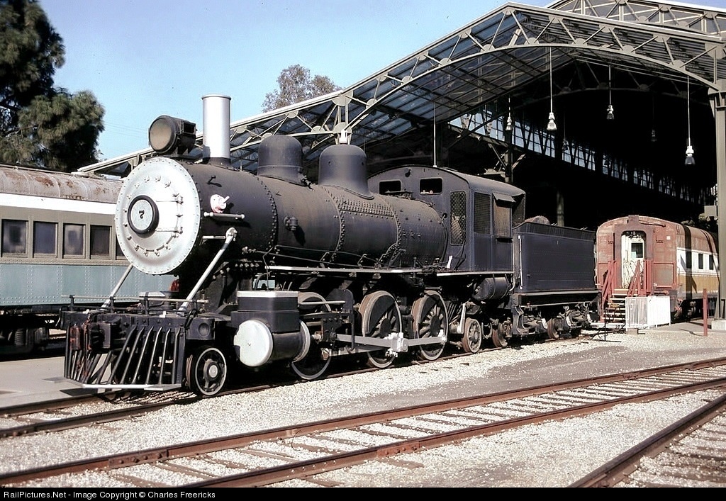 Built by the Dickson Works subsidiary of ALCO in Scranton PA in 1902 as a 2-6-0 "Mogul" for Minnesota Land & Construction, #7 was then sold to Sharp Construction Company, who added a two-wheel trailing truck to turn it into a "Prarie." During the WWI, #7 served at Camp Kearney, San Diego, and during WWII it worked at Defense Ordnance at Fort Wingate, NM and the Navajo Ordnance Plant at Flagstaff, AZ. Sharp & Fellows, which dates back to 1877, is still a railroad contractor today. They donated this unit to the LA County Parks in 1954.