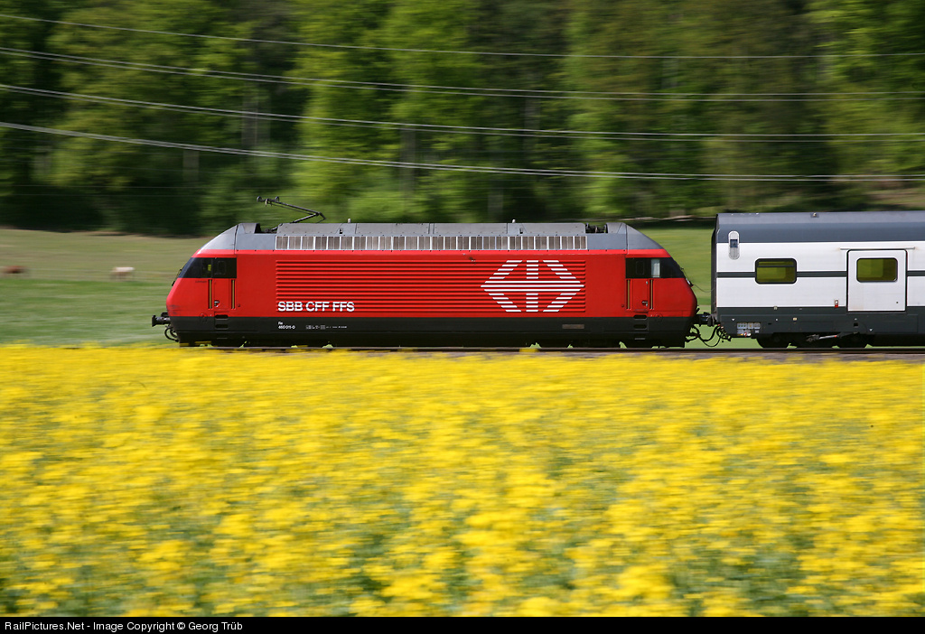 Re 460 011, or "loc 2000", designed by the italian Pininfarina, in the classic paint scheme. 119 of this powerful locomotives are the backbone of SBB's Intercity and Eurocity traction, most are used in pushpull operation.