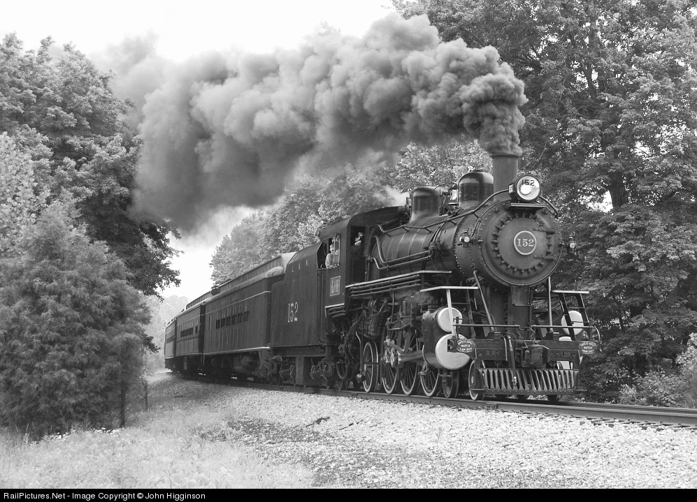| Looking like 1927, L&N 152 highballs through the woods with a short passenger train. Timeless scenes like this one are repeated several weekends throughout the year thanks to KRM's magnificent restoration and operation of this fine locomotive (more info: www.kyrail.org). |