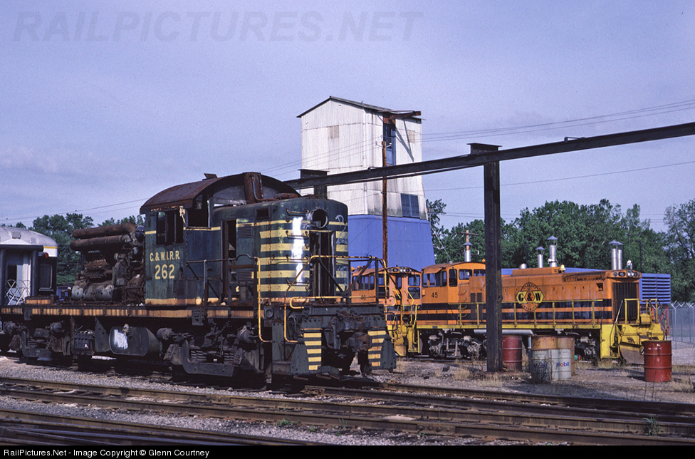 G&W 45 sits behind the shops in Retsof in the company of Chicago & Western Indiana RS-1 262 which was stripped of parts to keep G&W's Alcos running.