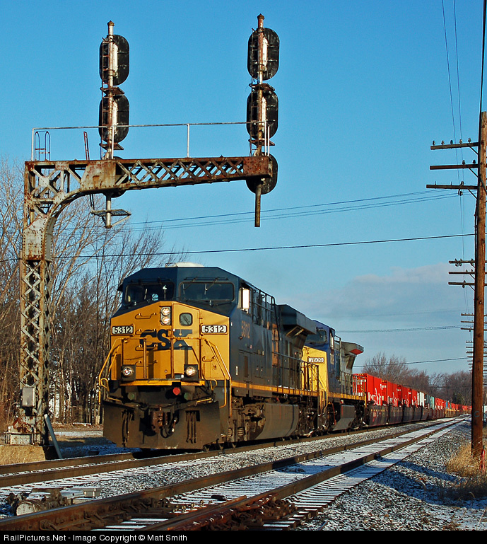 Now running via Fostoria every day, and almost always durring daylight, due to the reduction in trains on the CSX, Q23114 is passing under a old C&O signal, before turning west, with CSXT 5312 & 7809.