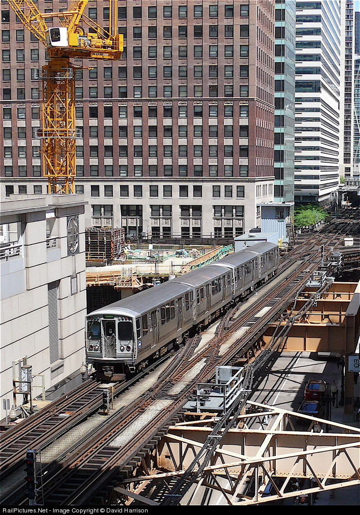 A northbound Green line train exits the famed Chicago Loop "L" at Lake and Wells STs, site of Tower 18 and heads west over Lake Street, the only "L" route in the city entirely built over a street. Except for the downtown area and east 63rd street, Chicago "L"s are all built on private property, either lots strung together or on a strip of land at the back of lots alongside the alley. Reason for this is a state law that says an "L" had to get the consent of 51 % of the property owners to build over the street. It was cheaper to buy the land than to bribe property owners. Only exception was the downtown areas...there land was too expensive, so bribery prevailed there.