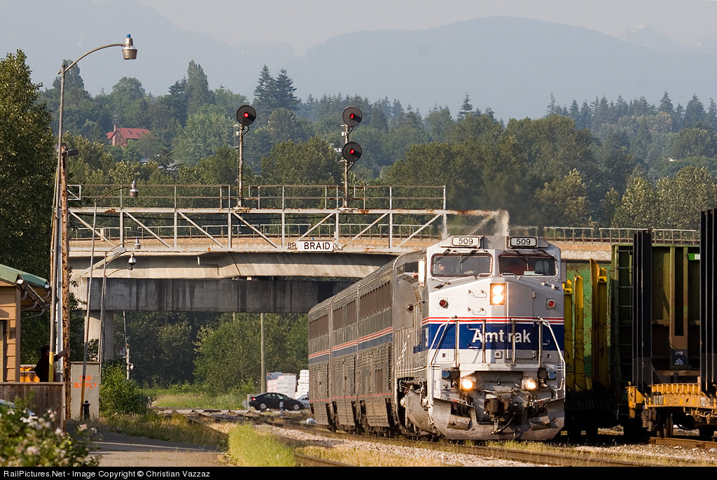 RailPictures.Net Photo: AMTK 509 Amtrak GE P32BWH (Dash 8-32BWH) at New Westminster, British Columbia, Canada by Christian Vazzaz