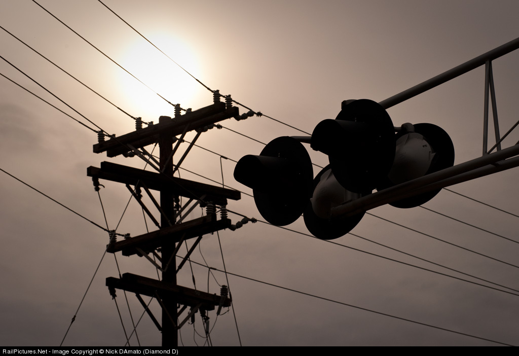 Two of the most common components of the American skyline, silhouetted against a misty sky. By next week the rails to Duke will be torn up, these crossing lights will be gone, and another small piece of railroad will be lost forever.