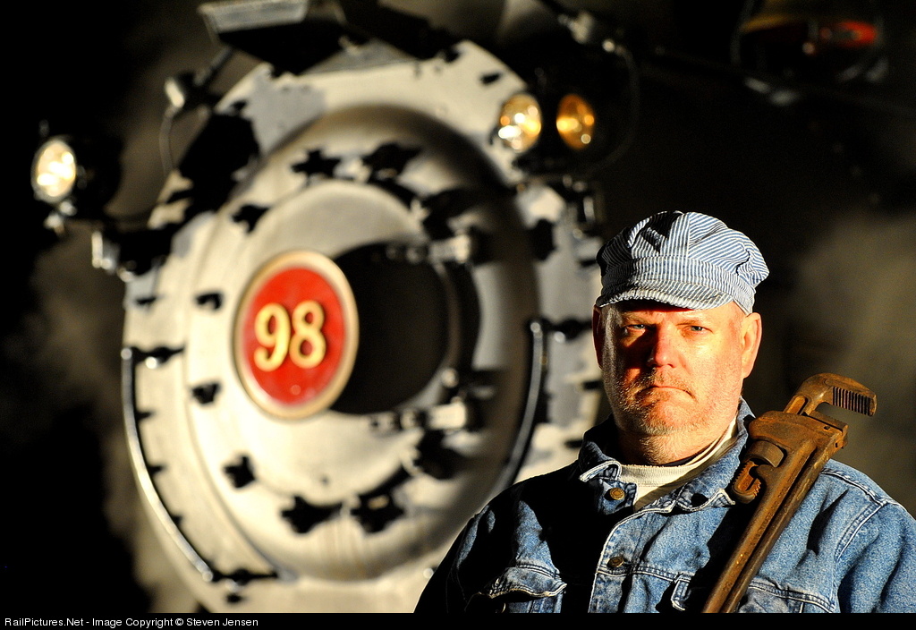| Here we see Assistant Road Foreman of Engines and Engineer for that night, Gary Baski. A Special Thanks goes out to Gary Baski for his wonderful efforts in operating locomotive 98 for this charter, and his outstanding handling of her with the low traction conditions. A Lerro Productions Photo Charter. |