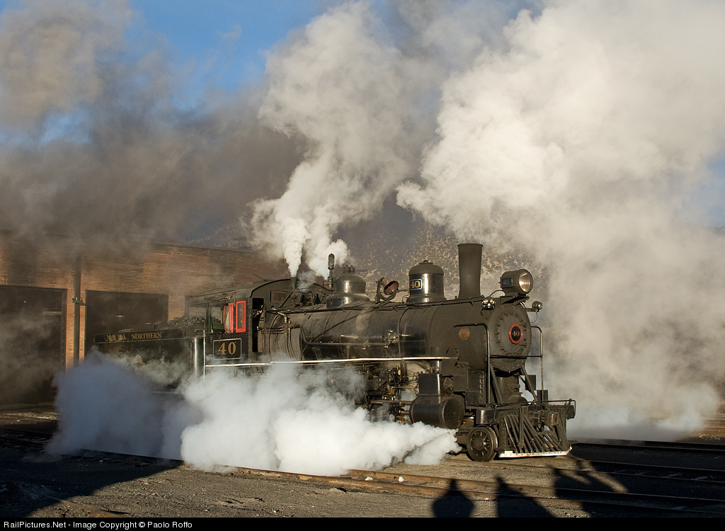Smoke Show. Its 7am, and #40's crew has been on duty since 3:30, building the fire in preparation for a day on the high iron. When she finally emerged from the engine house, the cool morning air combined with the exhaust to produce something resembling the Smoke Monster from TV's Lost.