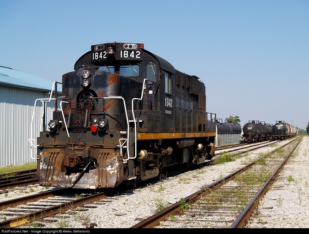St. Thomas & Eastern 1842 sits in the yard at Tillsonburg on this Sunday afternoon. This unit was formerly Ottawa Central 1842 and prior to that CP 1842 but what I found interesting was that was originally built as CN RS18 # 3634. The ST&E operates the former CN Cayuga Sub from St. Thomas to Delhi.
