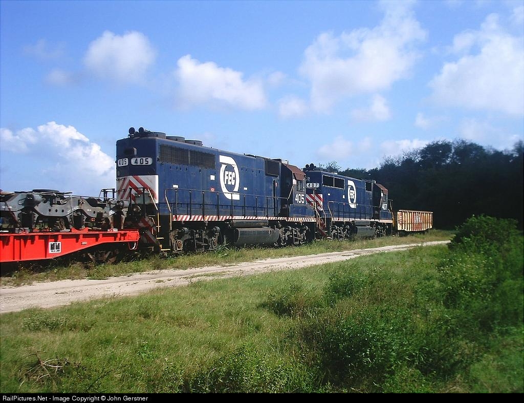 RailPictures.Net Photo: FEC 405 / 407 Florida East Coast Railroad (FEC) EMD GP40 at New Smyrna Beach, Florida by John Gerstner