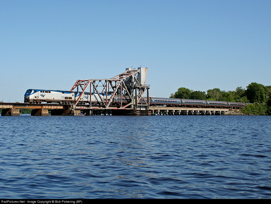 | A kayak paddle of one hour brings the first views of Buffalo Bluff bridge to Railpictures.net. The Silver Star running a few hours earlier then normal due to track work rumbles across the isolated Buffalo Bluff drawspan. |