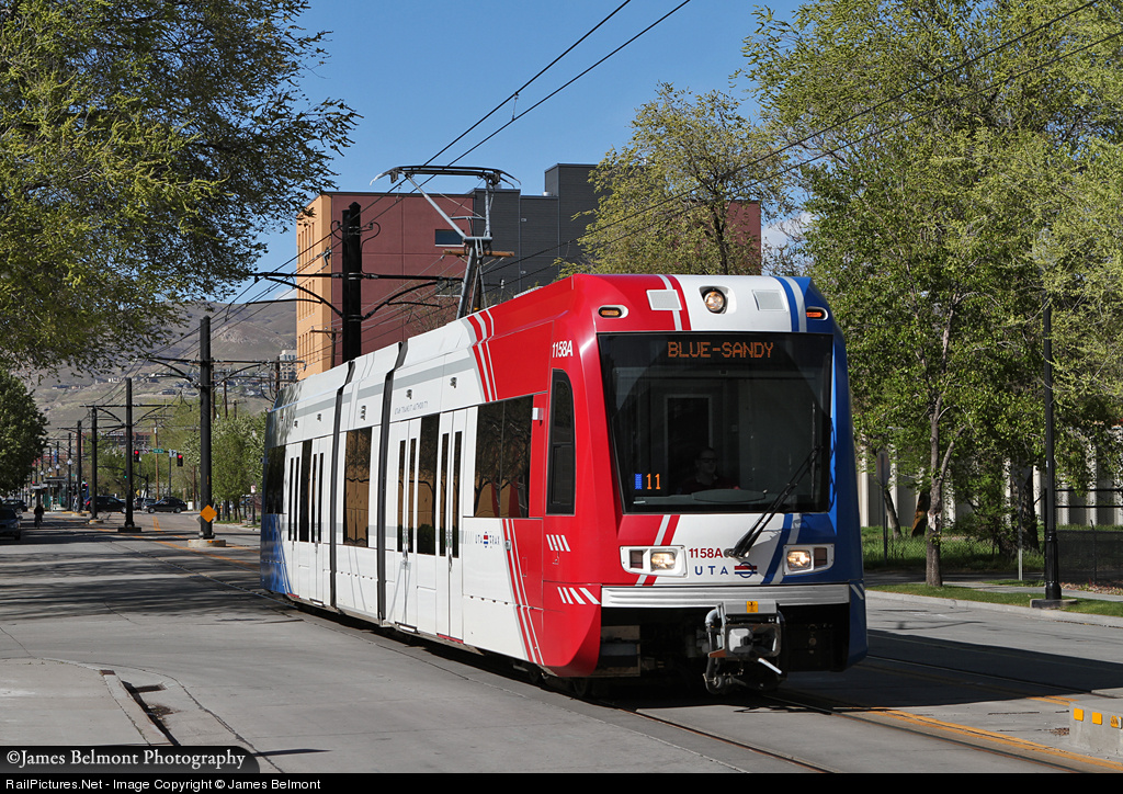 On a quiet Sunday afternoon, a UTA Blue Line train rambles slowly down 2nd West Street near the 9th South station in Salt Lake City. The highest concentration of TRAX trains (Red, Blue, and Green Lines) can be found here (between 4th South and 21st South streets). On weekdays, 24 trains pass this point per hour with 18 per hour on weekends. Light rail transit sharing real estate with automobiles in 2012...gotta love it!