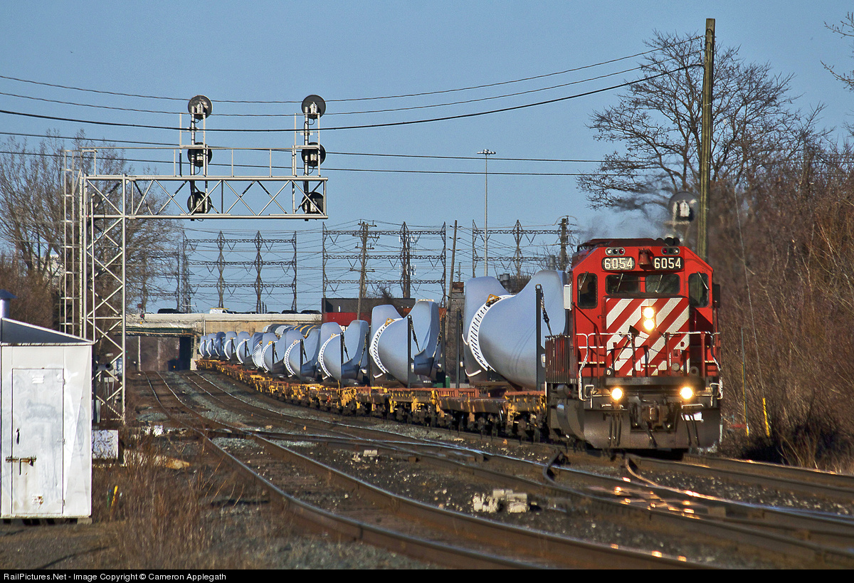 | CP train DIM-006 is shuttling windmill blades from the UP in Fort Madison, IA to the proposed installation area in Welland, in Niagara. Doubts have arisen in Welland as to if these wind turbines will even be installed as they are to be installed in a Conservative riding, of which the turbines are not welcome. Time will tell if Welland will receive a new form of green energy. |