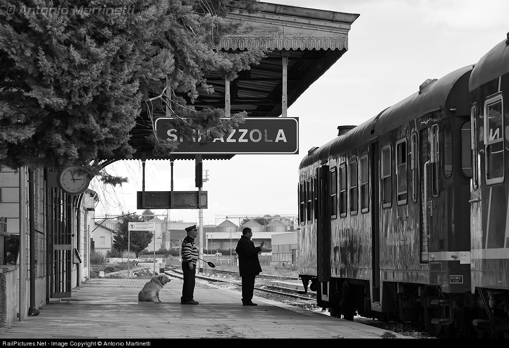 | Seems a scene from the past, the stationmaster of Spinazzola, with the help of his white four-legged "collegue", gives the "all clear" signal to the engineer of one of the only three daily serices on the rural Spinazzola-Barletta line. |