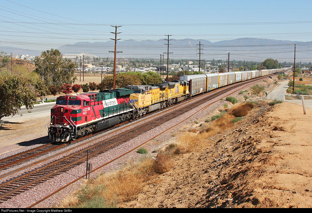FXE 4678 leads this westbound El Paso-Mira Loma auto train on BNSF rails.