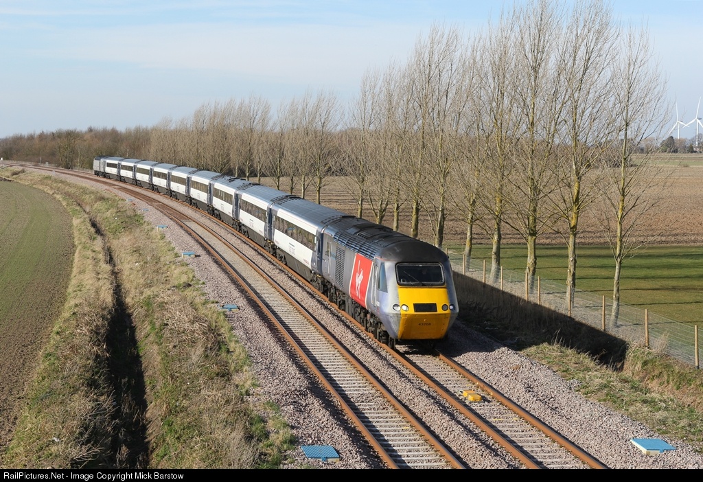On Saturday March 7th 2015, the East Coast Main Line was blocked at Newark due to engineering work. This resulted in trains being diverted away from the route, over the former GN/GE route via Lincoln. Here Class 43, number 43208 is seen leading train 1E07, 07:52 Aberdeen to London Kings Cross at Donnington near Spalding.