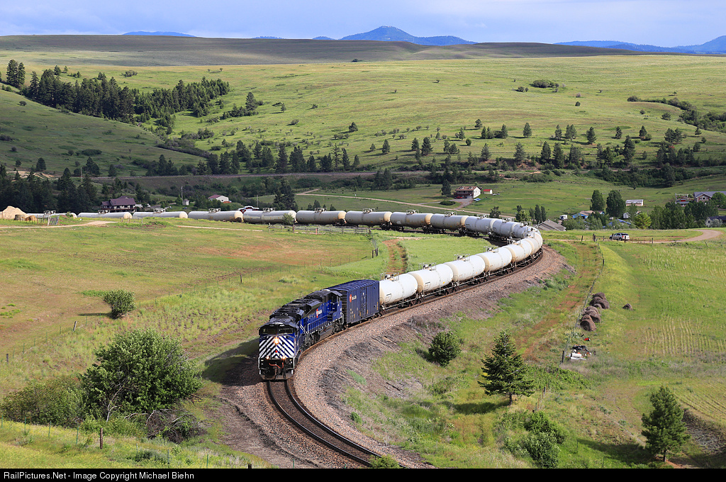 MRL's Gas local climbs the 2.2% grade out of Missoula traversing the last of the several horseshoe curves on Evaro Hill.