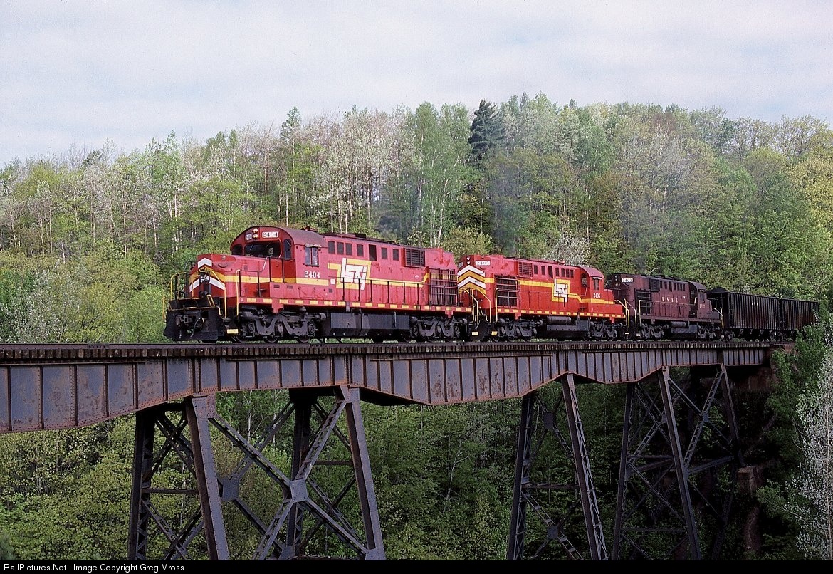 In a somewhat unusual move, 3 LS&I Alligators bring a coal train up the hill from Marquette to Eagle Mills. It was a bit of a hike to get to the Dead River trestle, but the results were worth it.