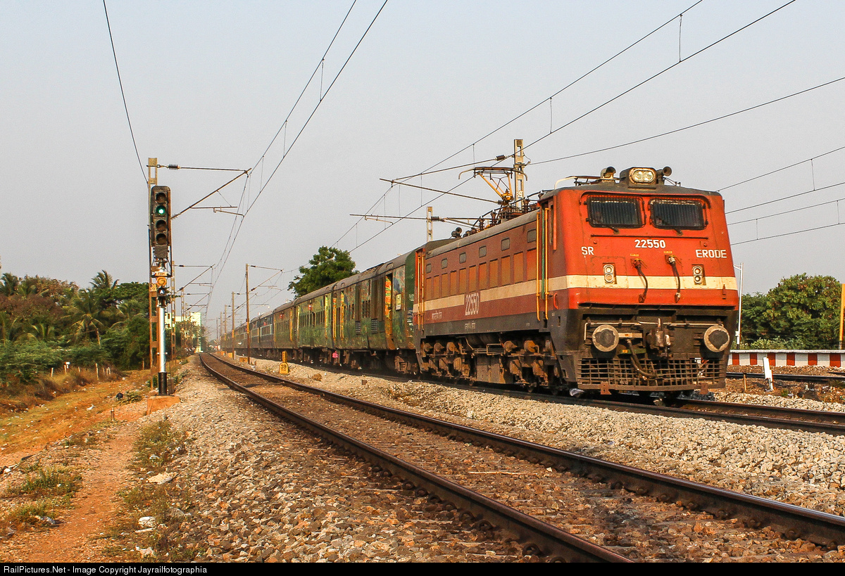 ERODE shed WAP-4 powering Chennai Central - Thiruvananthapuram Central AC Express on a summer evening passing Putlur